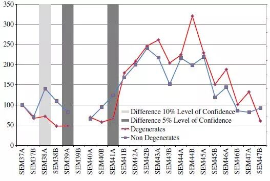 最后来看本文的核心议题:被归为“颓废作品”的画作(例如毕加索、梵高),在巴黎的艺品市场行情,真的比不上非颓废作品吗?图8显示未必如此:1937-41年间颓废作品的行情确实较低,显示纳粹的审美观能左右行情。1941年下半起情况就反过来,显示长期而言,眼睛还是雪亮的。