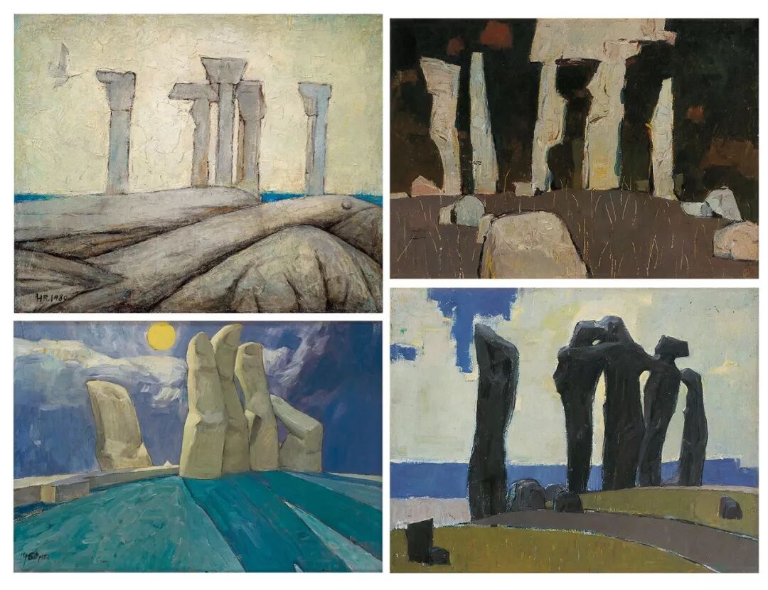 黄锐早期作品,《圆明园-自由》(左上)、《圆明园遗嘱》(右上)、《圆明园葬礼》(左下)、《圆明园新生》(右下),曾在1979年的“星星美展”上展出。
