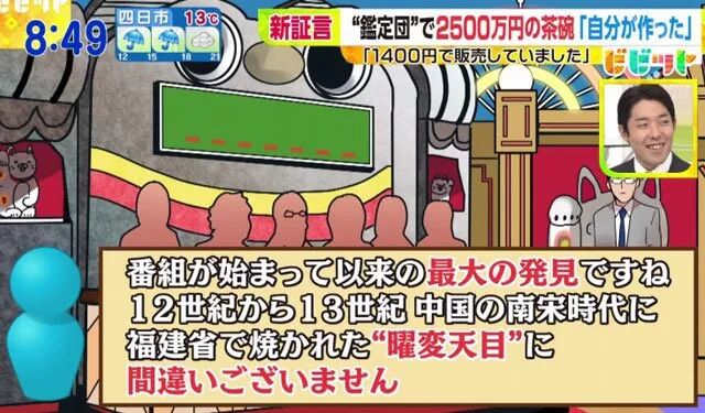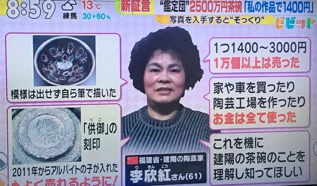节目播出后,立即就有熟知日本“曜变天目茶碗”的研究者和试图再现曜变天目的陶艺家,纷纷指出“节目中的展品是赝品”。
