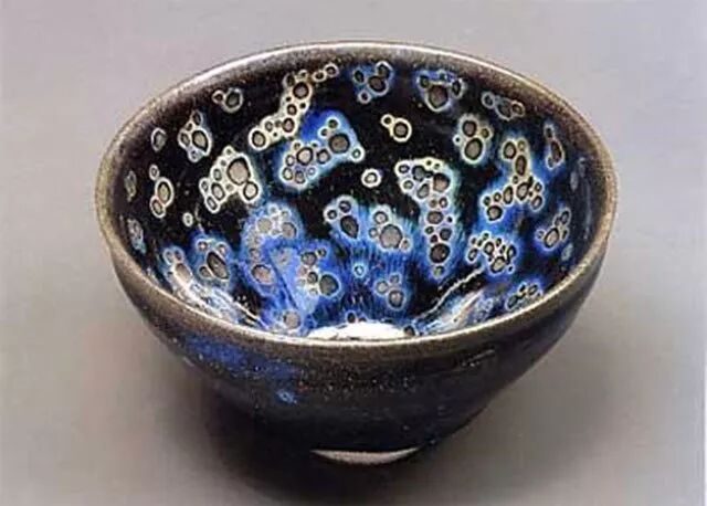 从统一成白色的定窑和统一成天青色的汝窑可以明显的看出来,中国的瓷器基本上是以单色为贵的。但是,对于日本人来说,单色的作品过于完美反而不受人欣赏。日本人追求的是某种“变化”,这种价值观与“曜变天目茶碗”完美的契合。