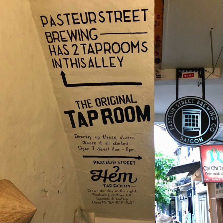 按照Google Map来到Pasteur Street 144号,并没有看到酒吧的门脸,在一条小巷口看到酒吧的LOGO,你就知道这里内有乾坤。这条小巷里有PSBC的两个Taproom,左手边上楼是最初的Taproom,右手边上楼是后来扩张出来的第二家Taproom。