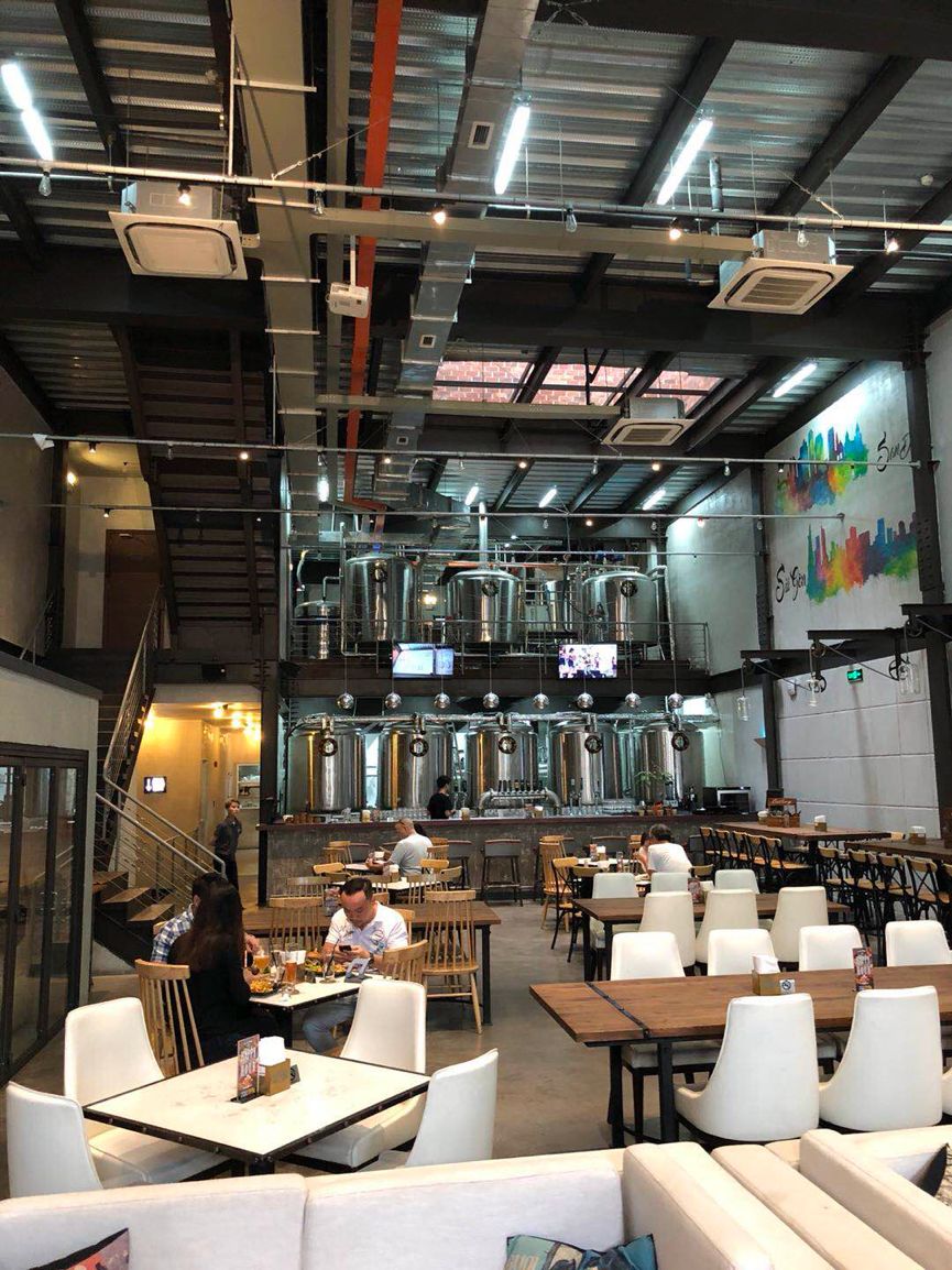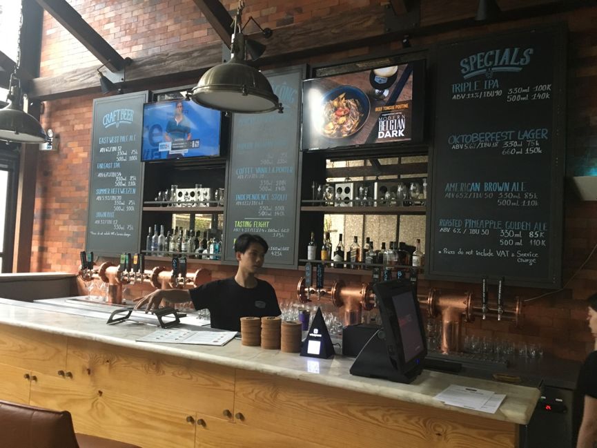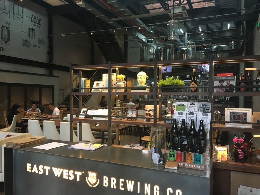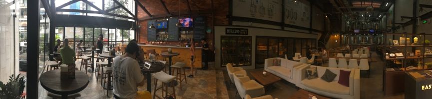 East West是我们在西贡到访的第一家精酿酒吧,第一感觉就是,好大好豪华!虽然同样是前店后厂的结构,但是这家的单层面积几乎是7 Bridges的3倍,后来我们得知,这家店的老板虽然初涉精酿,但是资金雄厚,令西贡很多精酿同行羡慕不已。看张全景照片感受一下。