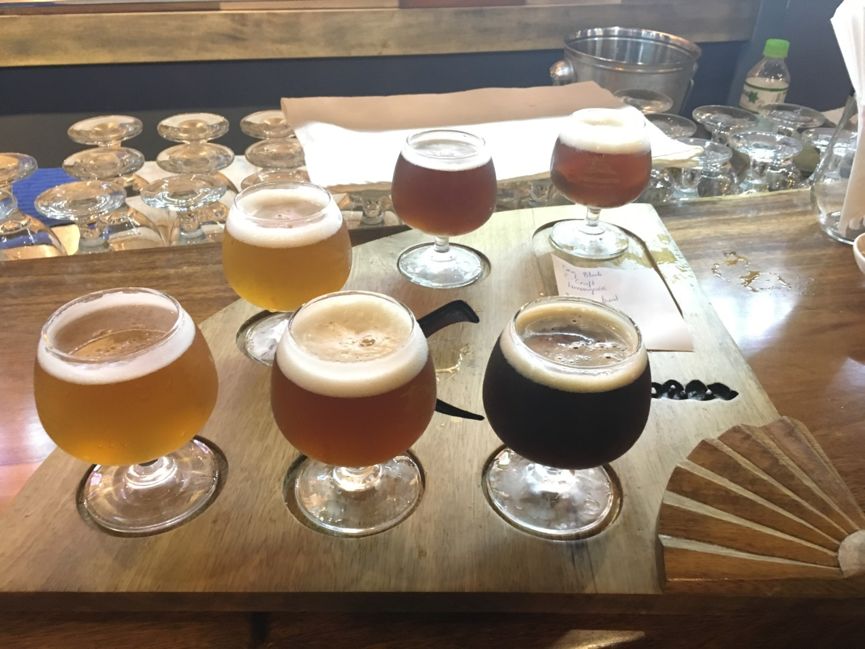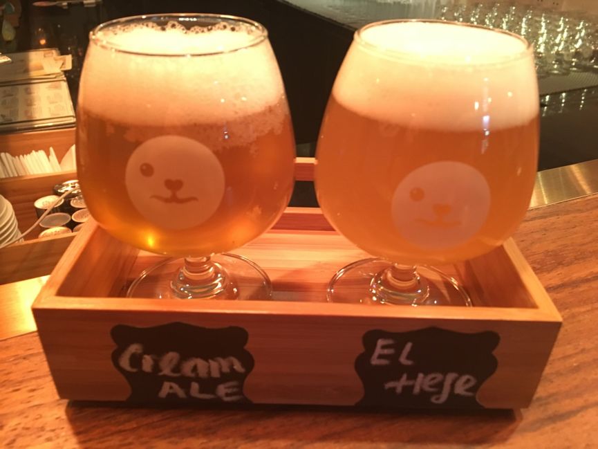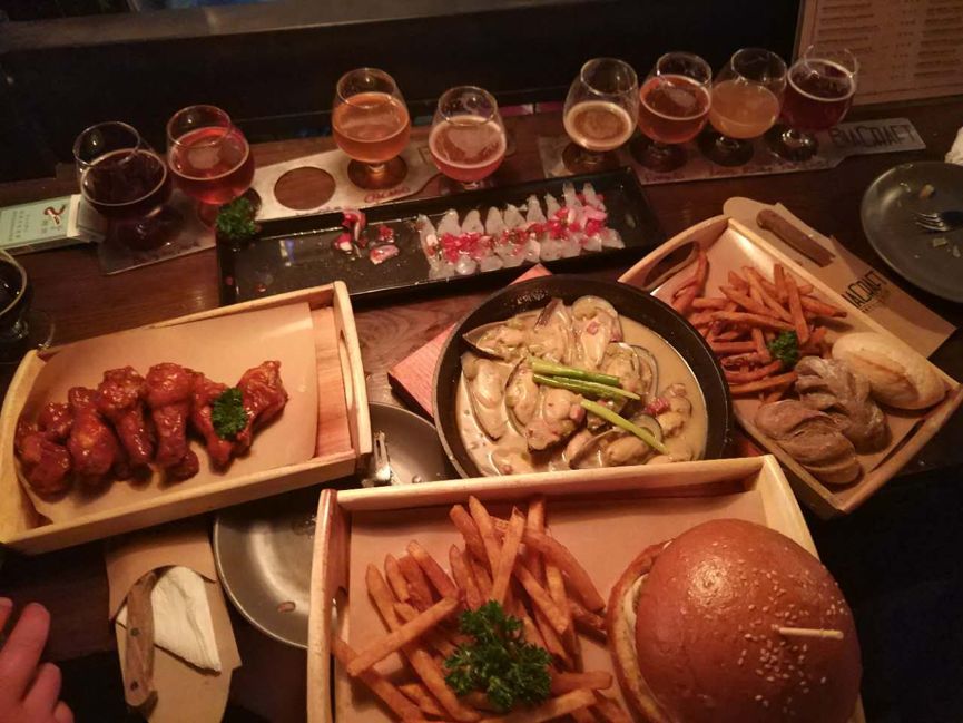 我们三人尝了2个Flight,整体品质相当之高,甚至超过了一些我们熟悉的美国品牌的水平。这里的大多数酒款风格定位准确,IPA不会让你觉得像是Pale Ale那样苦度不足而显得寡淡,Porter也不会让你觉得像是Stout那样厚重;同时特点鲜明,两款不同名字的IPA,可以喝出明显区别,不像某些酒厂,不同款的啤酒除了名字不一样,喝起来毫无二致。