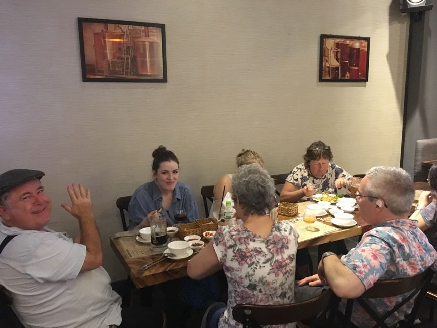 我们点了两个试饮套装,共8小杯进行品尝,总体来说水平中等偏上,每种风格都能做到名副其实,味道比较干净没有太多杂味。至此我们对越南精酿有了第一印象,风格多样,水平中等,创新不足。需要特别提的一点是,这里是标准的前店后厂结构,啤酒都在店内的酿酒设备中酿造,而很多其他自酿酒吧基本都是厂店分离的。