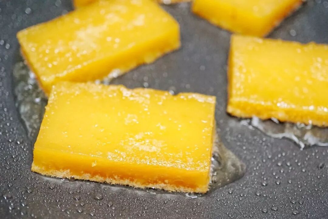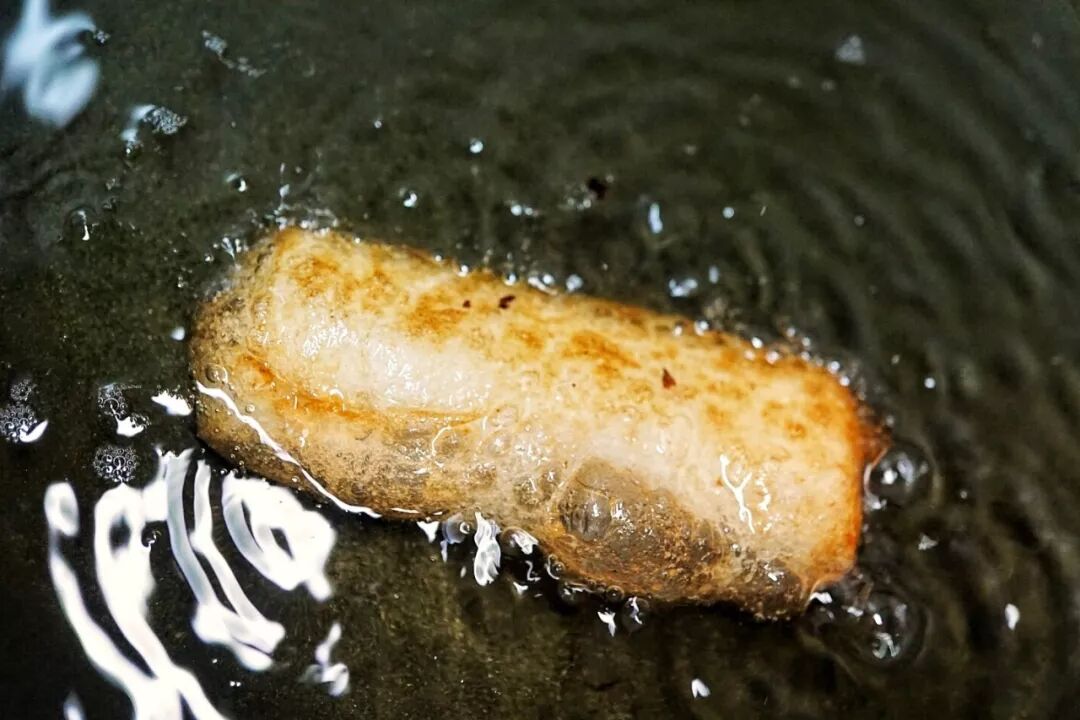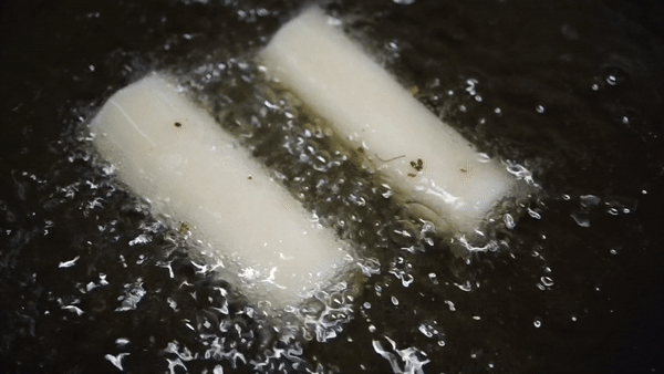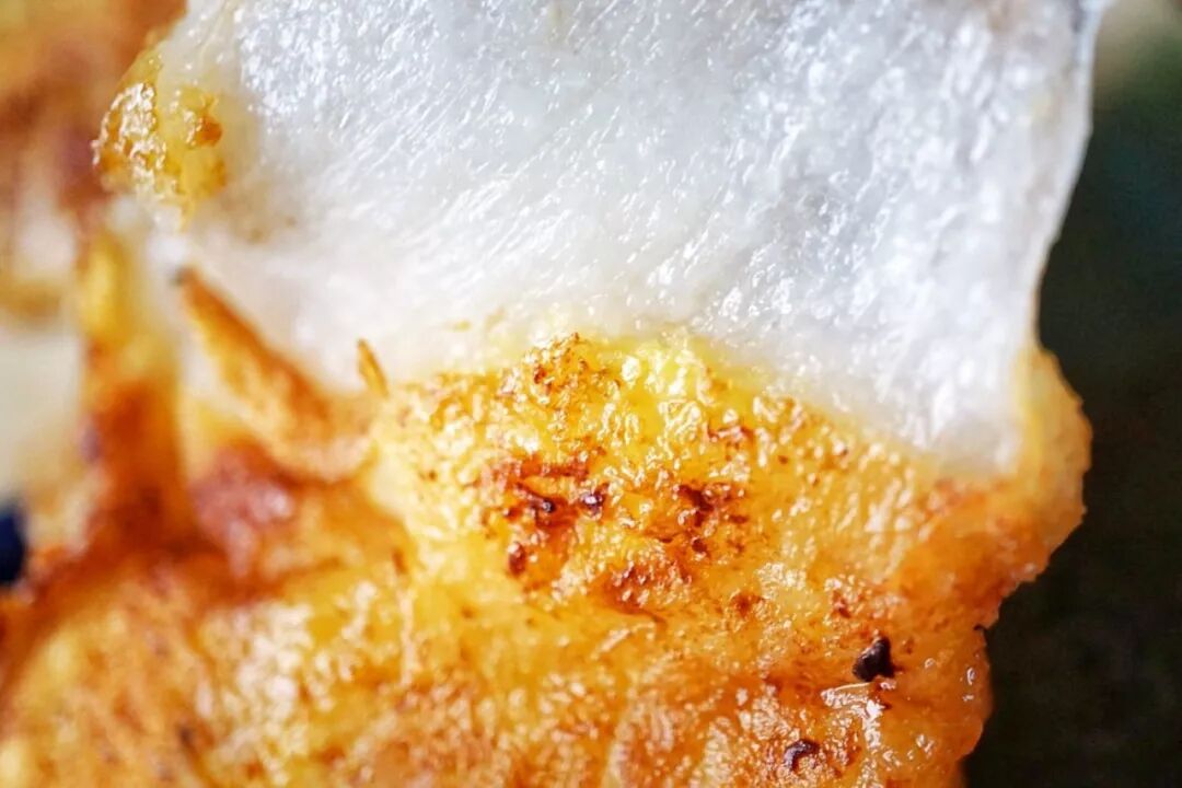 年糕外层会迅速膨胀成气泡,此时还不能心急。等到表面呈现均匀的焦黄色,就可以起锅了。