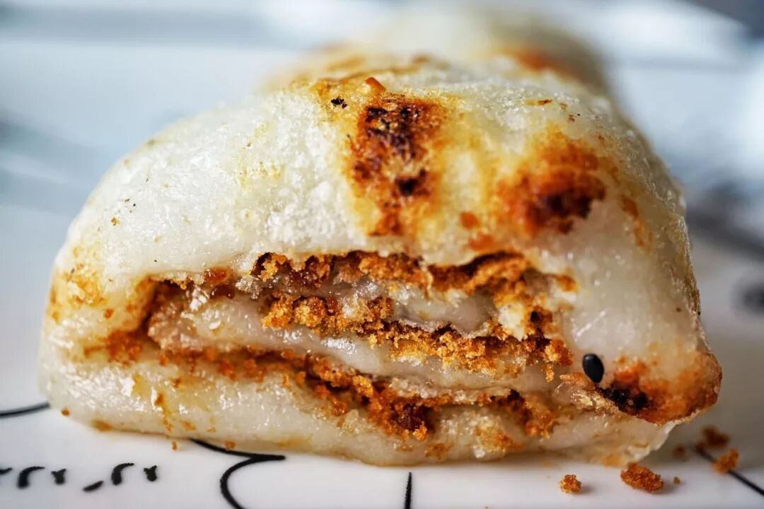 宁波的麻糍也值得尝试,用纯糯米手工做的,表面有一层松花粉,裹上蛋液在锅里微煎,比广东年糕更有韧性。