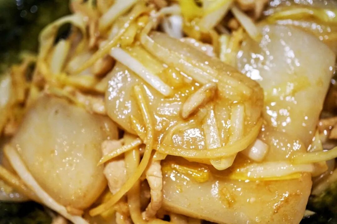 宁波年糕色泽洁白,口感柔滑软糯,特别有嚼头,又入味,带着满满的镬气,过年家宴上最爱的一道菜!