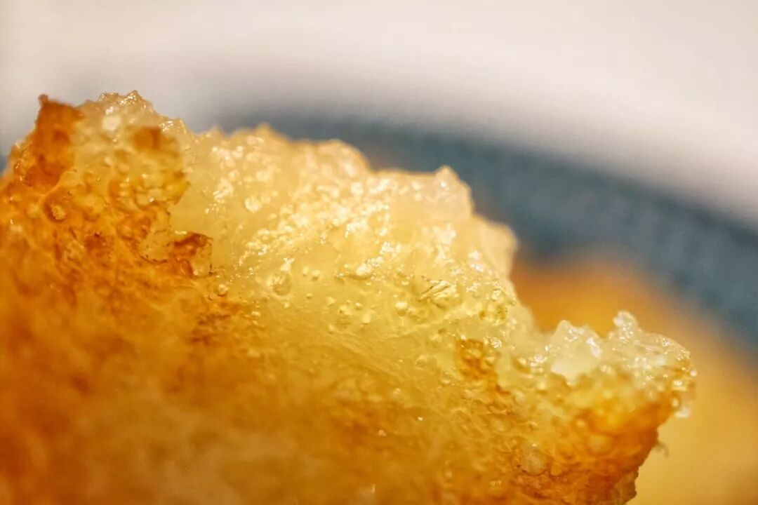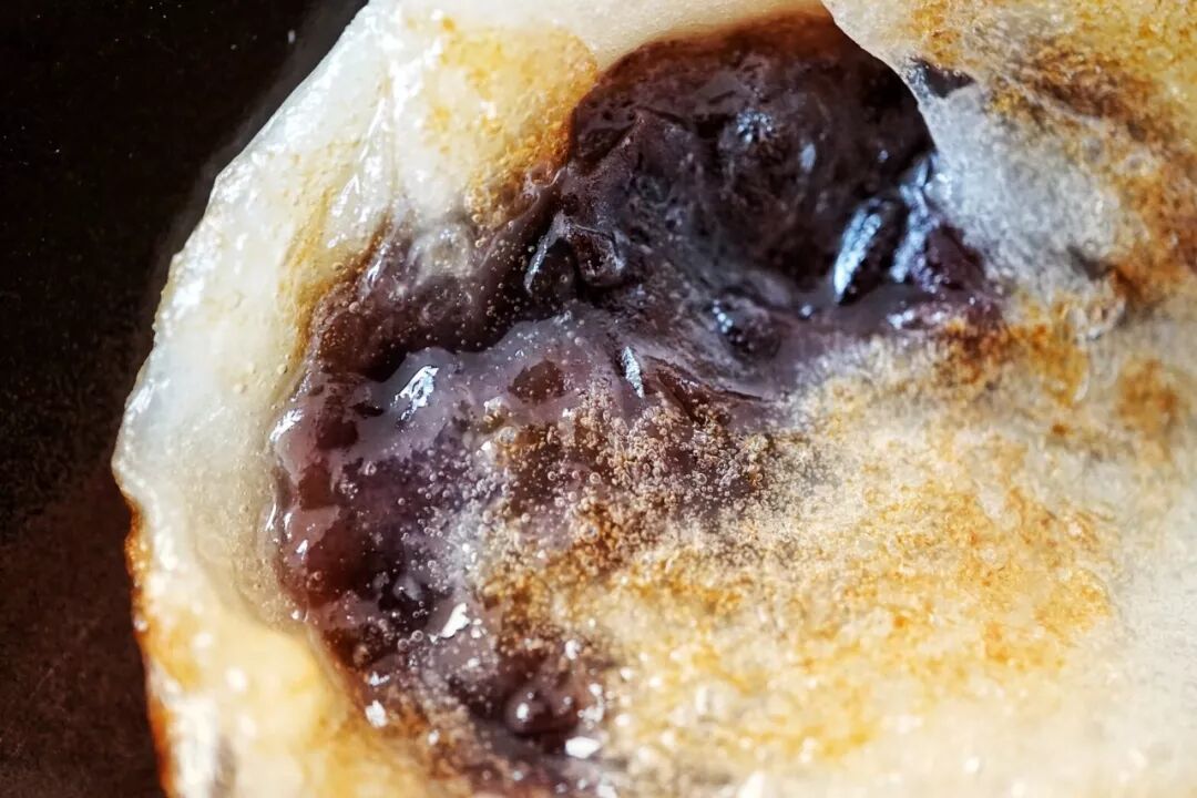 煎过的麻糍焦脆中带着粘软,裹着台州当地手工做的红糖吃,特别香!