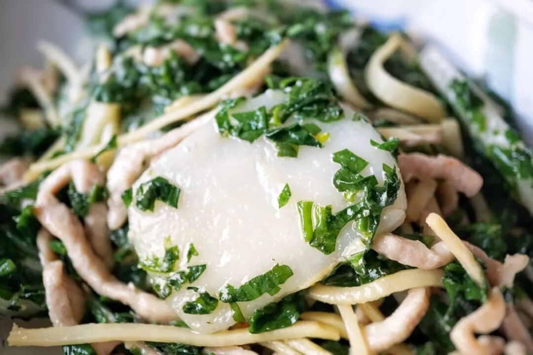 嵊州小吃有点像浙江版的沙县小吃,其中一道「雪菜豆腐年糕」,先炒后煮,带汤的「炒年糕」,吃过的都会被征服!