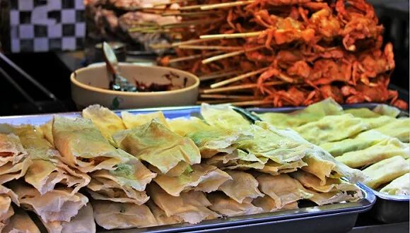 吃完香甜的定胜糕,再往前走一段路,能看到一两家卖一种叫做“葱包烩”的特色小吃的铺子。葱包烩中的“烩”字,暗指秦桧。