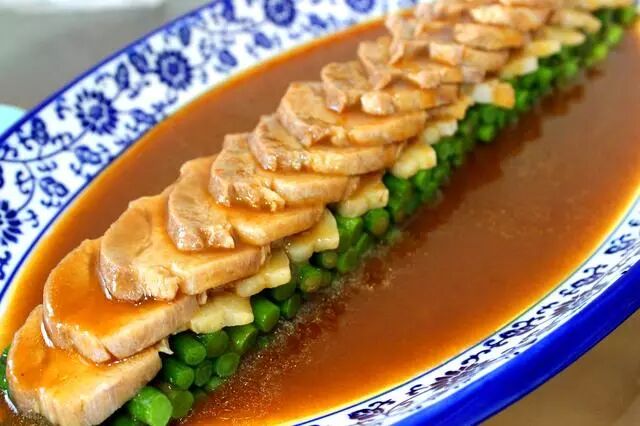 今天给大家介绍一道清口的菜肴——小桥流水。寓意十分好,汤汁类似流水,蒜薹和肉组成了流水上的小桥,因此这道菜得名小桥流水。虽然有肉用的是没有任何佐料的白煮肉,蒜薹也只是用清水焯水一下,没有经过任何炒制,所以非常清口,最后用色香味美的汤汁一浇,这道鲜香浓郁的菜肴就能上桌了,在春节期间吃再合适不过了。