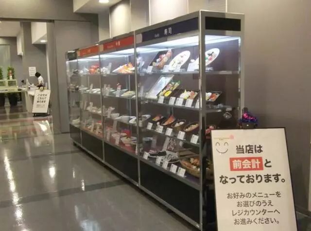 进去后有几个透明玻璃展示柜,专门用来展示当日供应菜肴的样品模型,跟常见的一些商场里的美食广场差不多。
