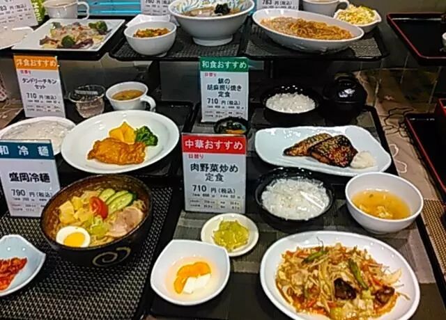 各种各样的套餐,通常每份的价格都在700~800日元左右,也就是40块钱出头,看上去荤素还都比较得当。