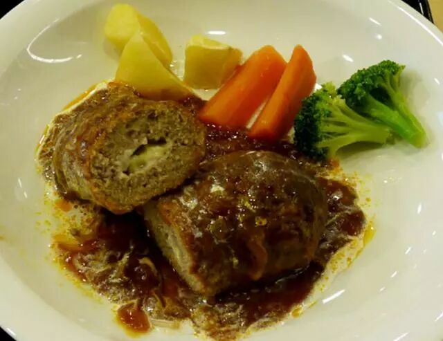 牛排卷儿中心夹着奶酪和酱料,味道不错,不过吃多了会腻。从菜式和价格来看,日本众议院食堂并没有特别高大上,和一般的食堂好像也没什么区别。