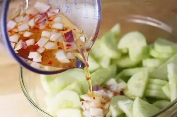 原料:黄瓜、蒜蓉、干辣椒、植物油、香油、生抽1勺、盐1小勺、蜂蜜1勺、醋1勺
