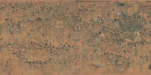 从另一个角度来说,《上元灯彩图》可以看作是《清明上河图》的一个“后代仿品”,若是在英文中,这幅画该被打上“inspired by《清明上河图》”的标签。在《清明上河图》横空出世之后,无论是宫廷还是民间,都很流行定制这种风格的风俗画,《上元灯彩图》很可能就是一位明代中晚期的富商向民间画师定制的作品,这位画师的身份姓名,至今不详。
