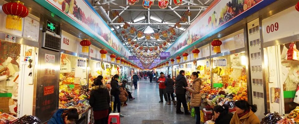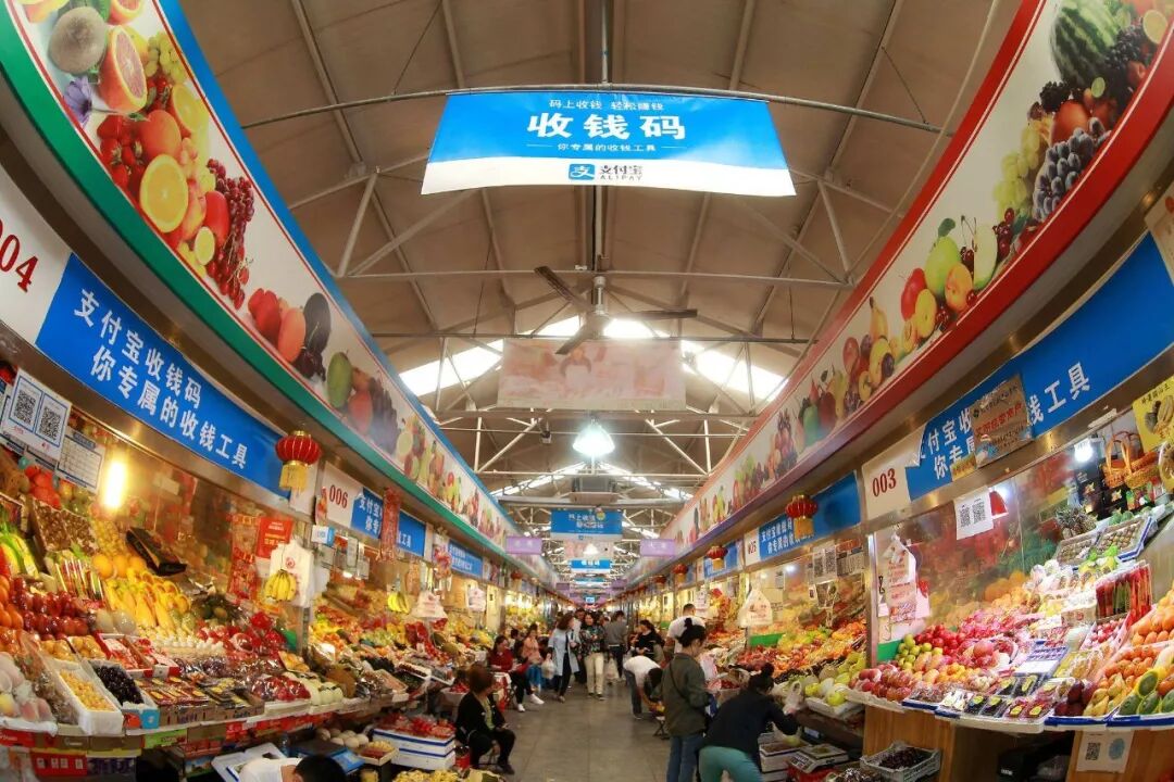 营业面积1560㎡,现有摊位139个的三源里菜市场