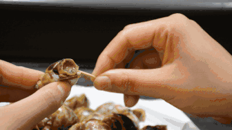 吃螺蛳总是伴随着心灵手巧的互动,一边专注着品尝美味,一边免不了跟身边的人插科打诨。小小一颗螺蛳值得细细琢磨、慢慢赏味,今年我在北京的家里嗦螺蛳的时候,脑子里想的尽是杭州的柔情,我猜那个邻桌的女孩以后再吃到螺蛳,脑中也会闪回那个撅着嘴教她嗦螺蛳的男生的滑稽模样吧。