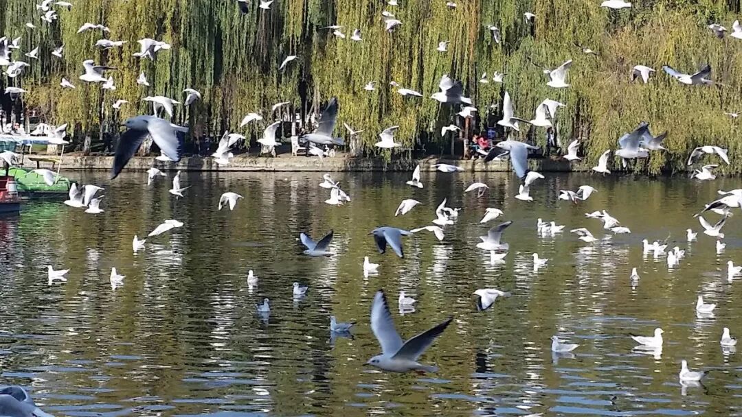 翠湖上的红嘴鸥
