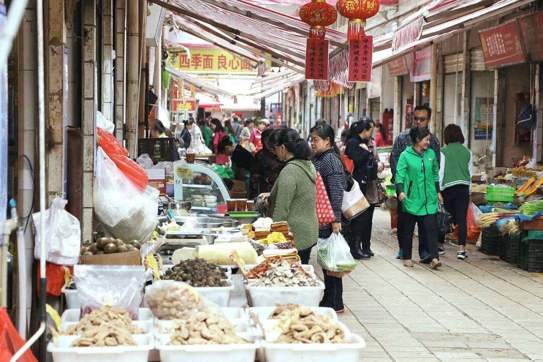 我们去的是篆新菜市场,以前菜市场在昆明是不存在的,都叫菜街子,沿街设店,农民从自家地里收获了食物蔬菜就拿到菜街子上卖。后来菜街子都变成了菜市场,而这家菜市场是昆明规模最大的。一个北方人,在昆明的菜市场很容逛到眼花缭乱。大葱是安宁弯葱,辣椒是邱北辣椒,各种叫不上名字的蔬菜与香料,也有最传统的猪肉和带皮黑山羊。