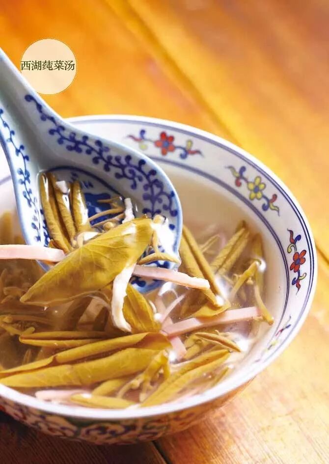 西湖莼菜汤如今已经是一道很平常的菜品,在杭州菜的餐厅中都可以见到。有的放的淀粉过多,感觉有点像鼻涕。其实莼菜应该口感嫩滑,由于嫩滑而致清远。古人描述莼菜滋味时说“其味香粹滑柔,略如鱼髓蟹脂,而清轻远胜”。但是古人还说其味似“花中之兰,果中之杨梅”却多半是猜度与溢美。