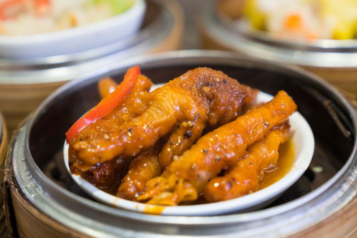 这里的点心类型不算十分丰富,经典的早茶四件套干蒸烧卖、水晶虾饺、鲍汁凤爪、豉汁排骨当然不能少,连怀旧点心棉花鸡、猪润烧卖等都可以在这里找到。