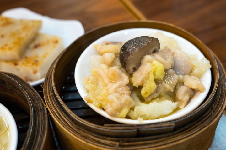 此外,就连市面上已经很少见的怀旧茶点这里都可以找到,比如说猪润烧卖、鹌鹑蛋烧卖。而凤爪、金钱肚等因为蒸得入味和口感软绵又大受欢迎。随心而选,再叹一壶茶,这里就可以给街坊从凌晨hea到下午。