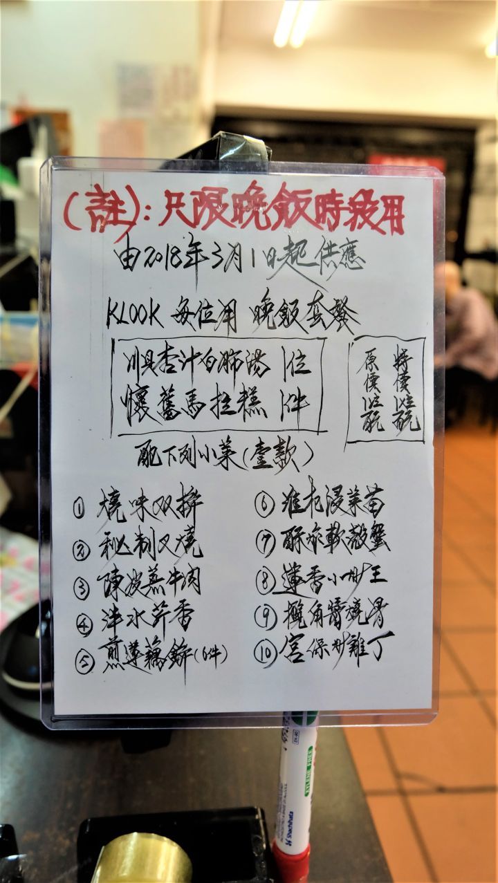莲香居老员工特意为KLOOK手写的独家餐牌。