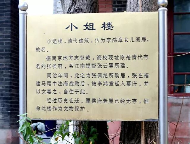 张佩纶旧居是江苏省文物保护单位,民国年间中华民国立法院曾在此办公,但说明牌错误甚多。仔细想想。若张佩纶同治年间即买下此宅,岂能成为李家小姐的闺房