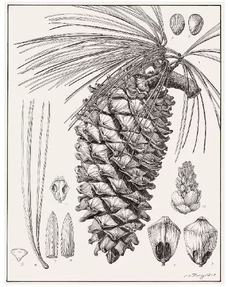 华山松,曾孝濂手绘《云南植物志》插图,选自《云南花鸟》附录。