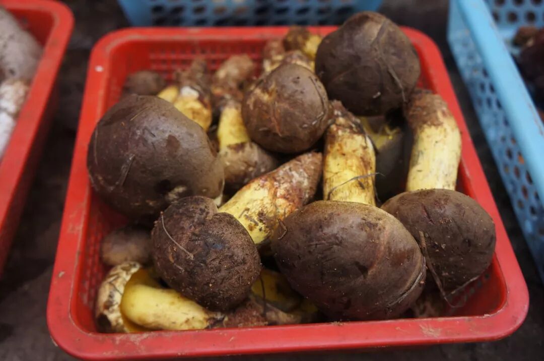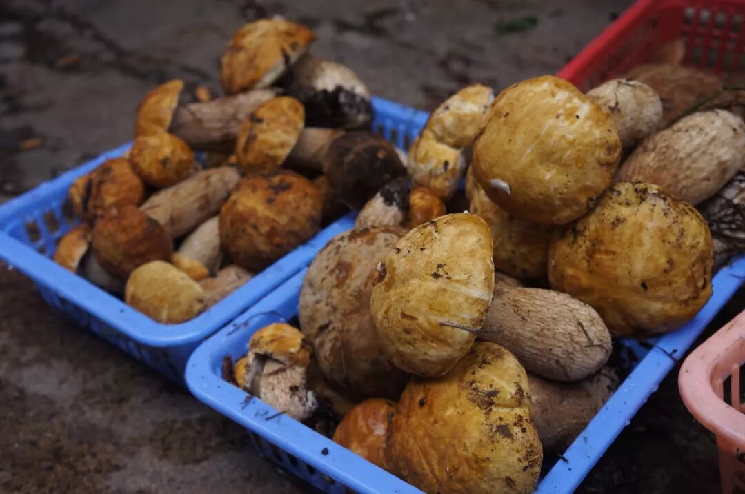 比如最早上市的见手青,属于红牛肝菌的一种,45月就能在市场看到它的身影,切开后断面呈蓝色,手摸到后也会变色,于是就有了这奇妙的名字。