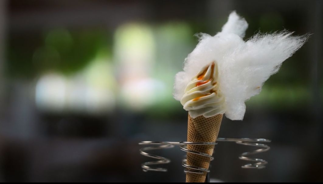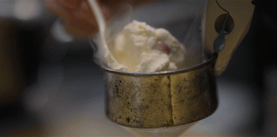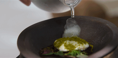 奶油卷被透明的糖衣包裹,咬一口嘎吱嘎吱脆;淋上一杯神秘的液体,一根冰笋破土而出;被液氮冻过的玫瑰,被一掌拍碎…