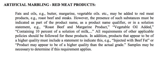 在美国,USDA 有规定,如果牛肉经过了注脂工艺,那么在食品包装上必须注明类似「该产品经过注脂工艺加工」这样的字样。