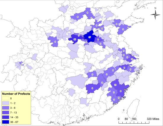 1040年代北宋知州的出身地 (来源:陈松,“Governing a Multicentered Empire”)