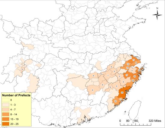 1210年代南宋知州的出身地 (来源:陈松,“Governing a Multicentered Empire”)