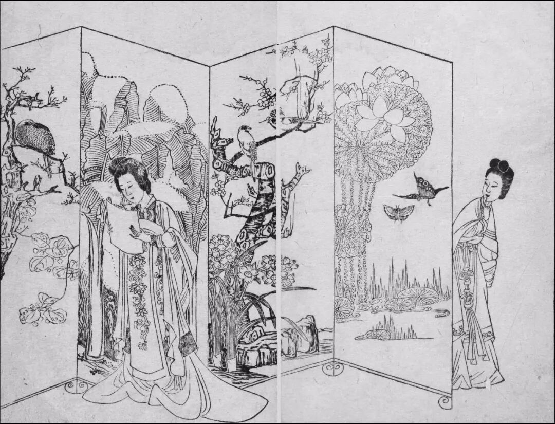 此外,《西厢记》连环画上很多场景只涉及建筑室内外的局部,刻画细致,一笔不苟,其中的碑碣、梁柱、门窗、铺地、家具以及建筑装饰也都可以在广济寺找到原型