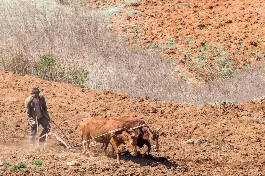 2014年云南昆明,红土地彝族劳作的男人。喀斯特地形的地表崎岖、土壤十分贫瘠,不利农业发展,因此在云贵高原有“地无三里平,天无三日晴,人无三両银”的俗谚 / 视觉中国
