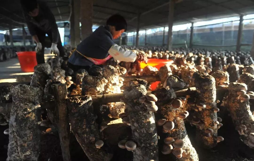 2015年9月27日,浙江临安,岛石镇山川可可食用菌合作社里,工人正在大棚里采收香菇。人们已经能够选择性的种植各种食用菌 / 视觉中国