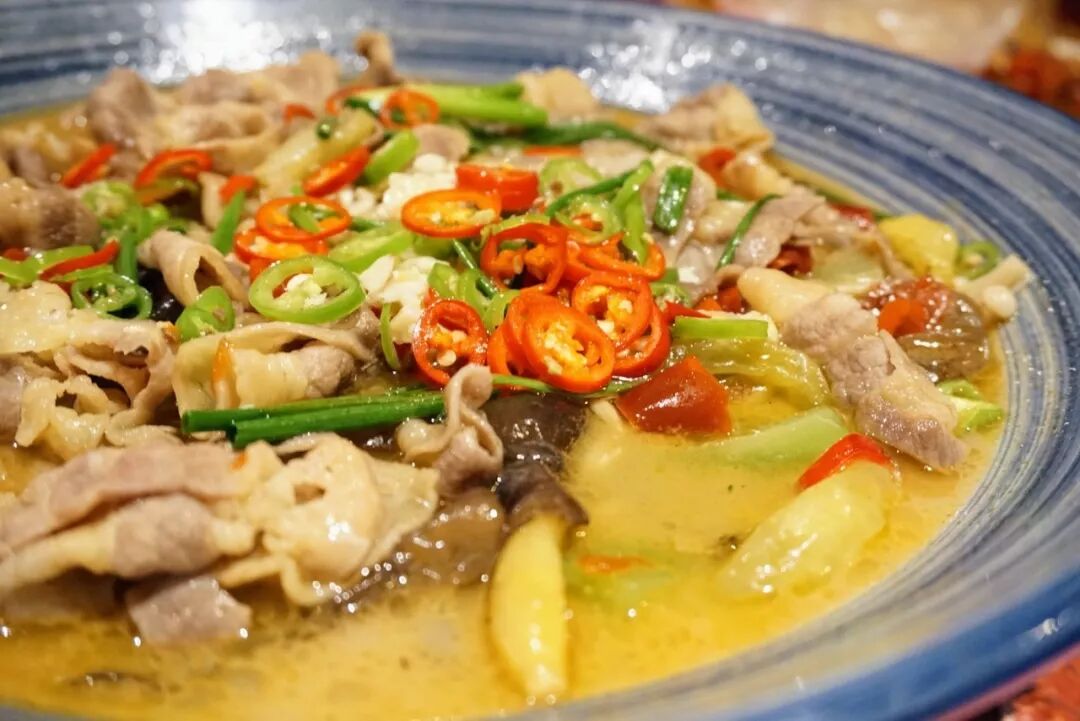 著名的贵州凯里酸汤鱼其实就主要用红酸汤做汤底,一尾江河鲜鱼,一碗白豆腐,再加上绿叶蔬菜,用木姜子油点睛,吃一锅汤红肉白菜翠的酸汤鱼,只感觉酸与鲜简直就是同一个字。