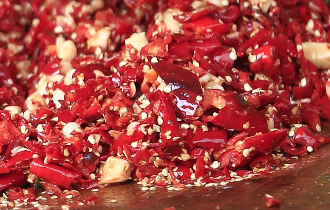 ▲ 酸菜鱼。图/网络 而且,制作泡菜就和卤肉一样,讲究用“老卤水”,有祖传泡菜手艺的人家都会在每次腌制泡菜时保留一坛“老汤”,反复使用,一直作为传家宝传下去。“老汤”做出的泡菜会更好吃,这可不是瞎说,研究者做了对比实验以后发现,老泡菜水里确实含有更多数量更多种类的微生物,发酵过后会产生更复杂的风味物质。 所以,要找好吃的泡菜,就得跑去有丰富泡菜史的地方。四川新繁的泡菜就很出名,用一把黄豆芽加酸菜煮一碗最简单的素汤都可以又酸又鲜,让人心花怒放胃口大开。 ▲ 剁椒,重辣微酸,霸道得很。图/视觉中国