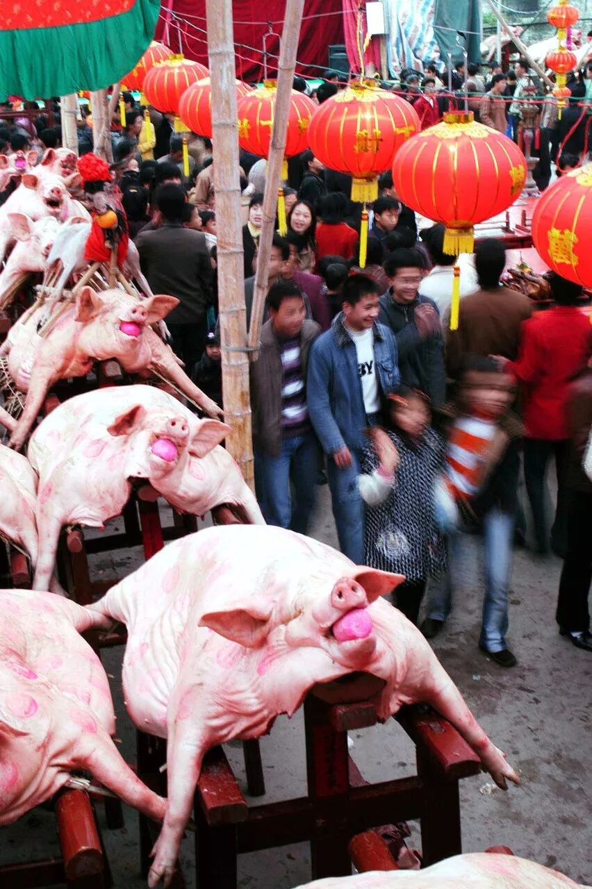 ▲ 潮汕地区传统的正月赛大猪活动。猪作为中国人最主要的肉食来源,被广泛饲养,各种年节庆典,自然少不了它们的身影。图/图虫·创意