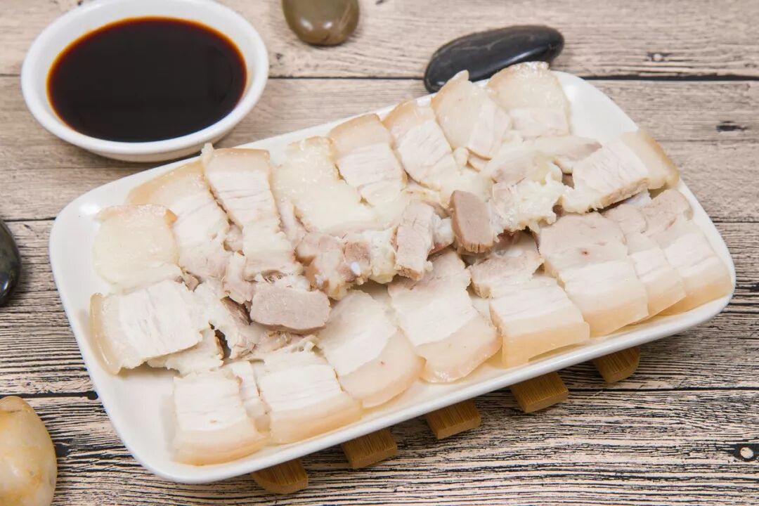 猪肉肥瘦各5分为佳,煮熟后薄切。好的瘦肉应该肉质细腻,少筋不柴,有淡淡肉香;肥肉入口即化,丰腴甜香。