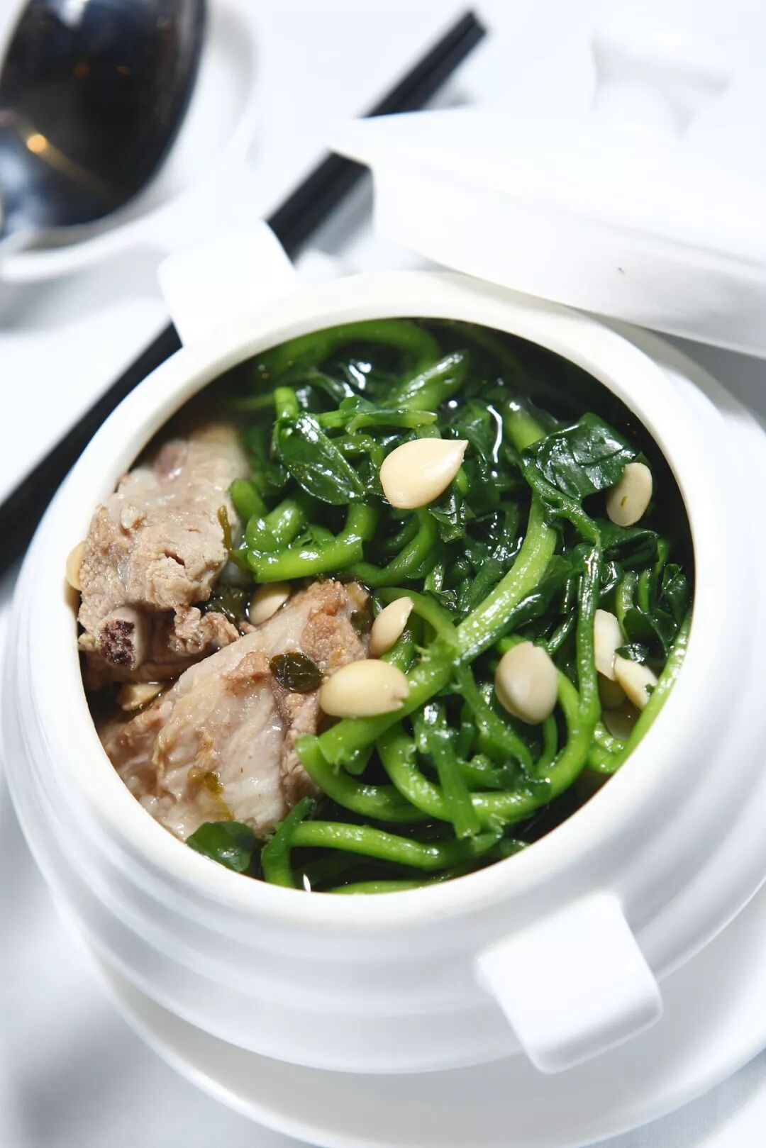 ▲ 西洋菜拿来和猪肉搭配再合适不过。图为西洋菜排骨汤。图/视觉中国
