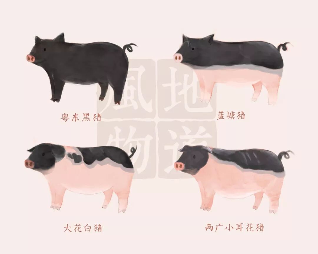 ▲ 广东省的四种常见肉用猪品种。绘图/Q年