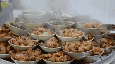 竹溪蒸盆是蒸菜里面的巨无霸。食材五花八门,但绝不是一股脑地扔进去,而是按照熟成所需时间由长到短依次放入。保证所有食材的火候恰到好处,并且味道适口。这绝对是个技术活,没有一定的经验很难成功。蒸盆胜在内容丰富,更胜在气势和内涵。多种多样的食材,既是对生活富足的祝福,也有一派中国人梦想中团圆和气的景象。