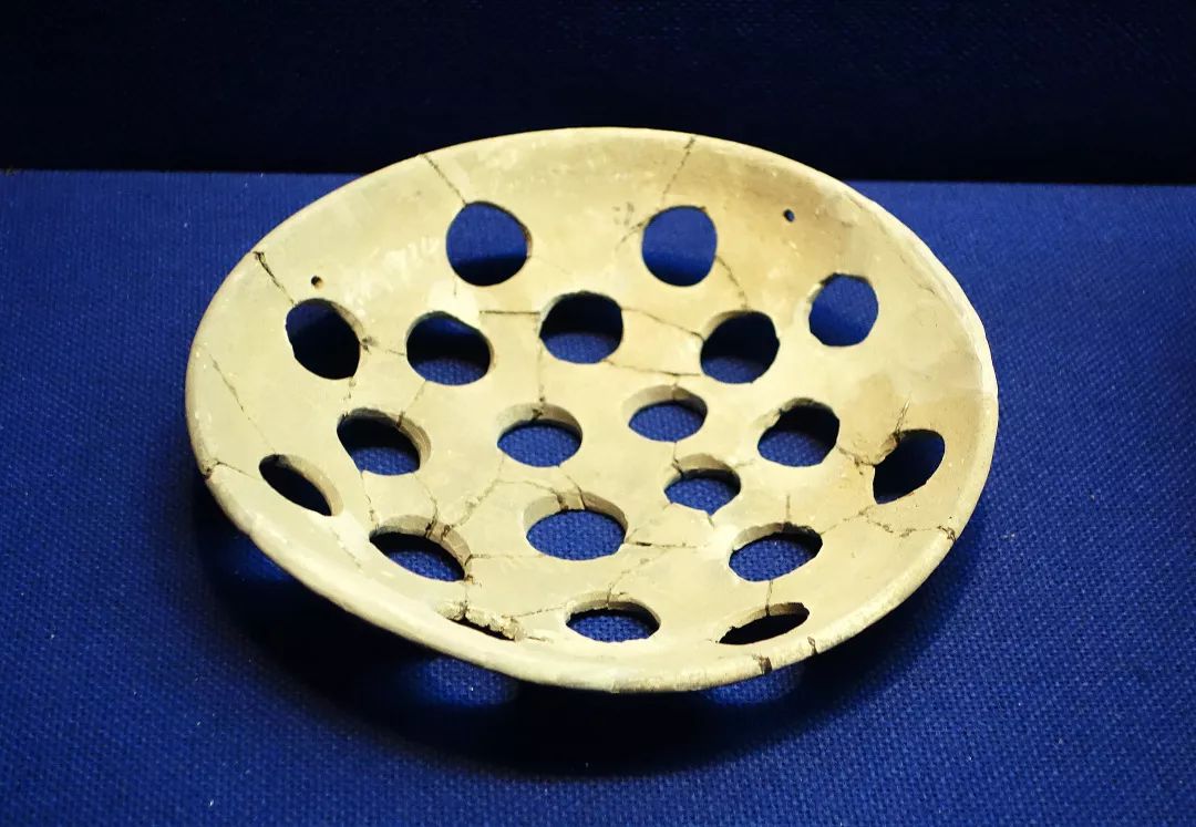 ▲ 出土于湖北天门的新石器时代灰陶甑箅和红陶甑。图/视觉中国