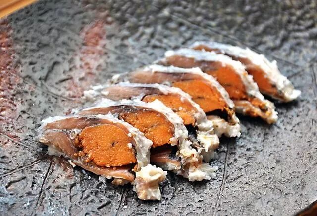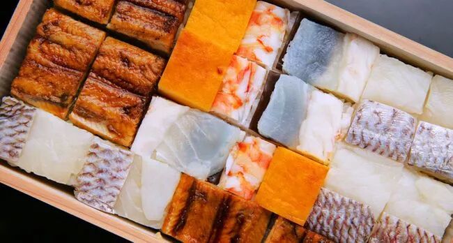 进入江户时代以后,为了节省发酵时间,日本人就直接往米饭里头搁酒粕让它发酵来节约时间。关西人还将醋饭和鱼肉放入木盒中码齐压实,成为「押寿司」,这种寿司至今在大阪还很流行。