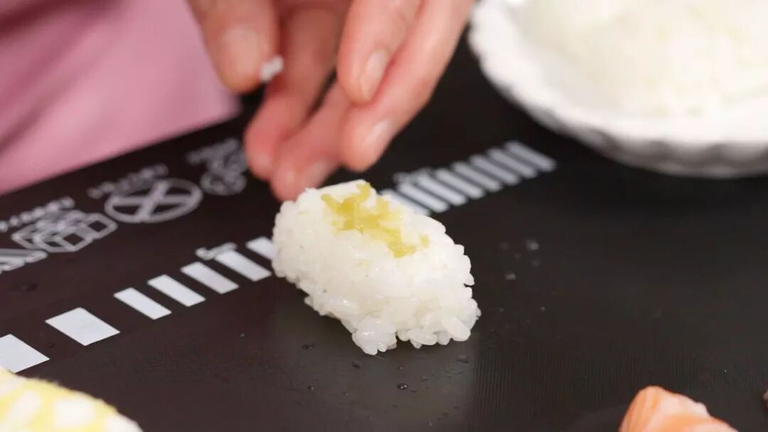 然而,这5部分材料都准备好,还有关键的一步「捏」,这也是老爷们判断寿司品质的重要标准。