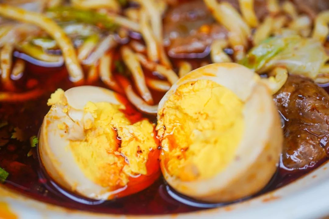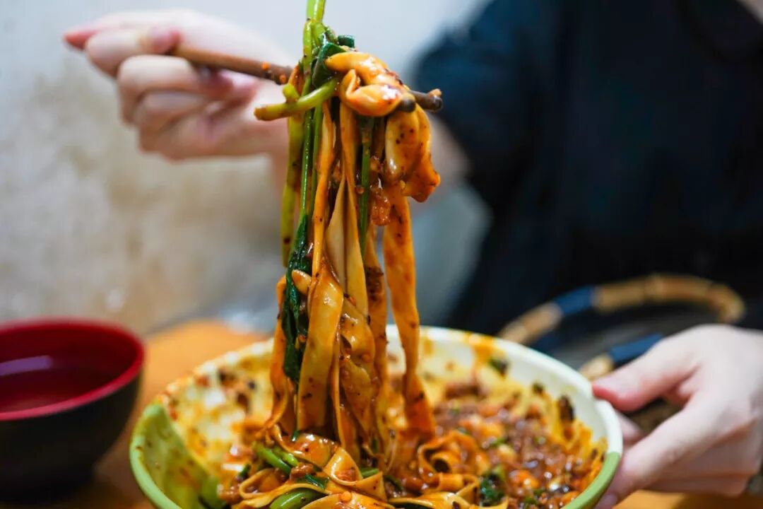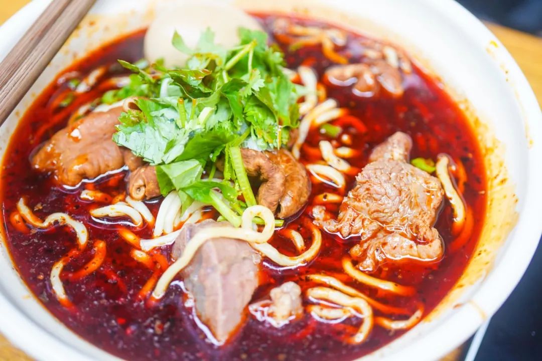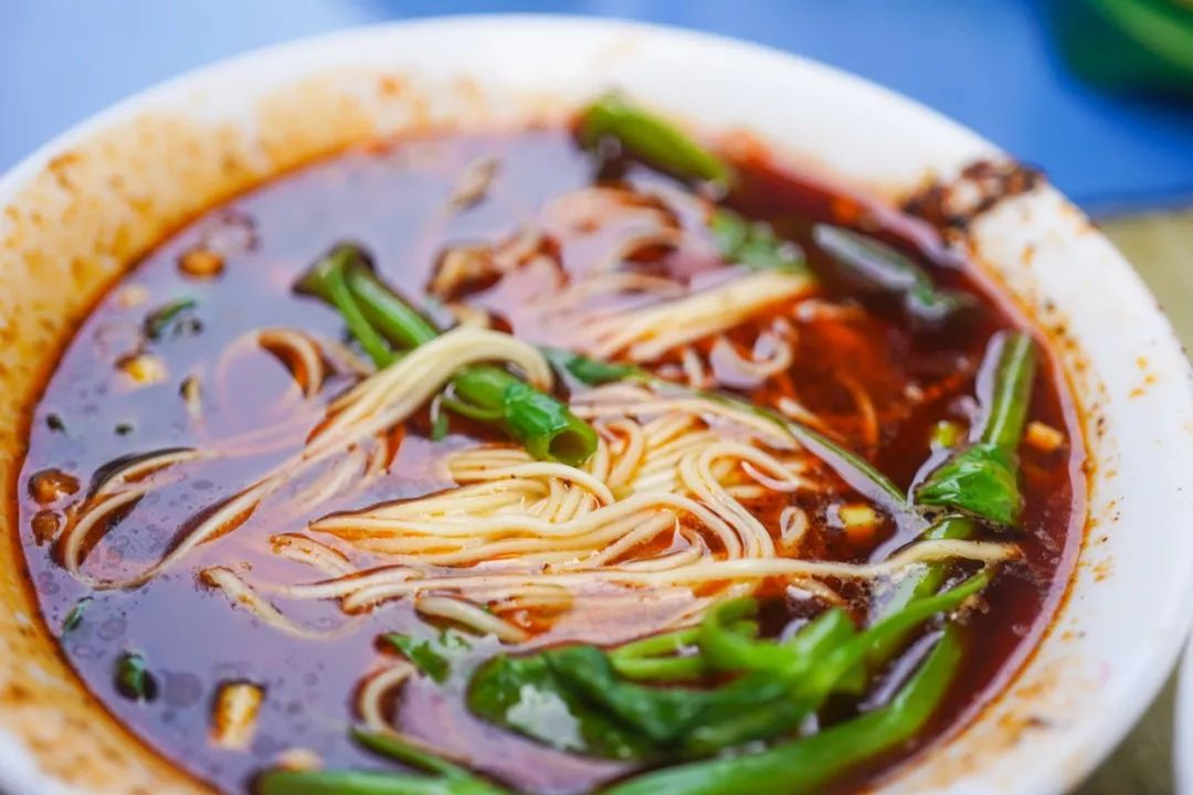有的面馆还可以过桥,单点一盘包包白(即包菜),在红油汤底里过一遍,脆甜麻辣,好吃。