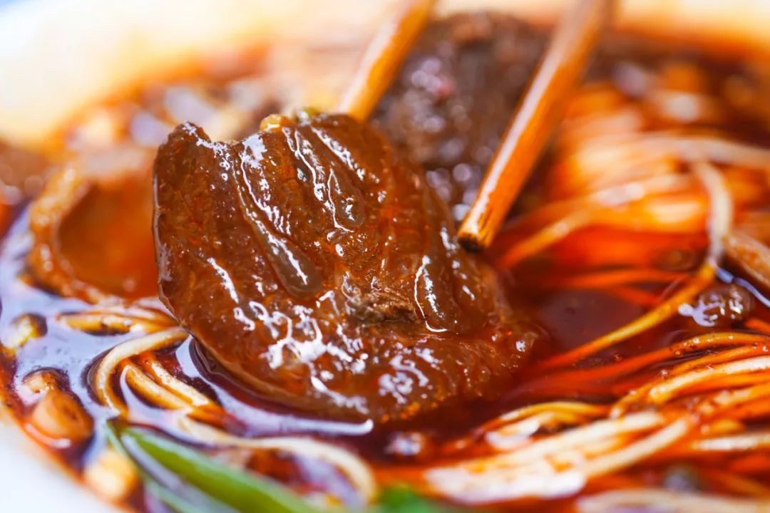 店家每天凌晨五点多起来炖上牛肉,筷子稍稍用力一夹就酥烂。